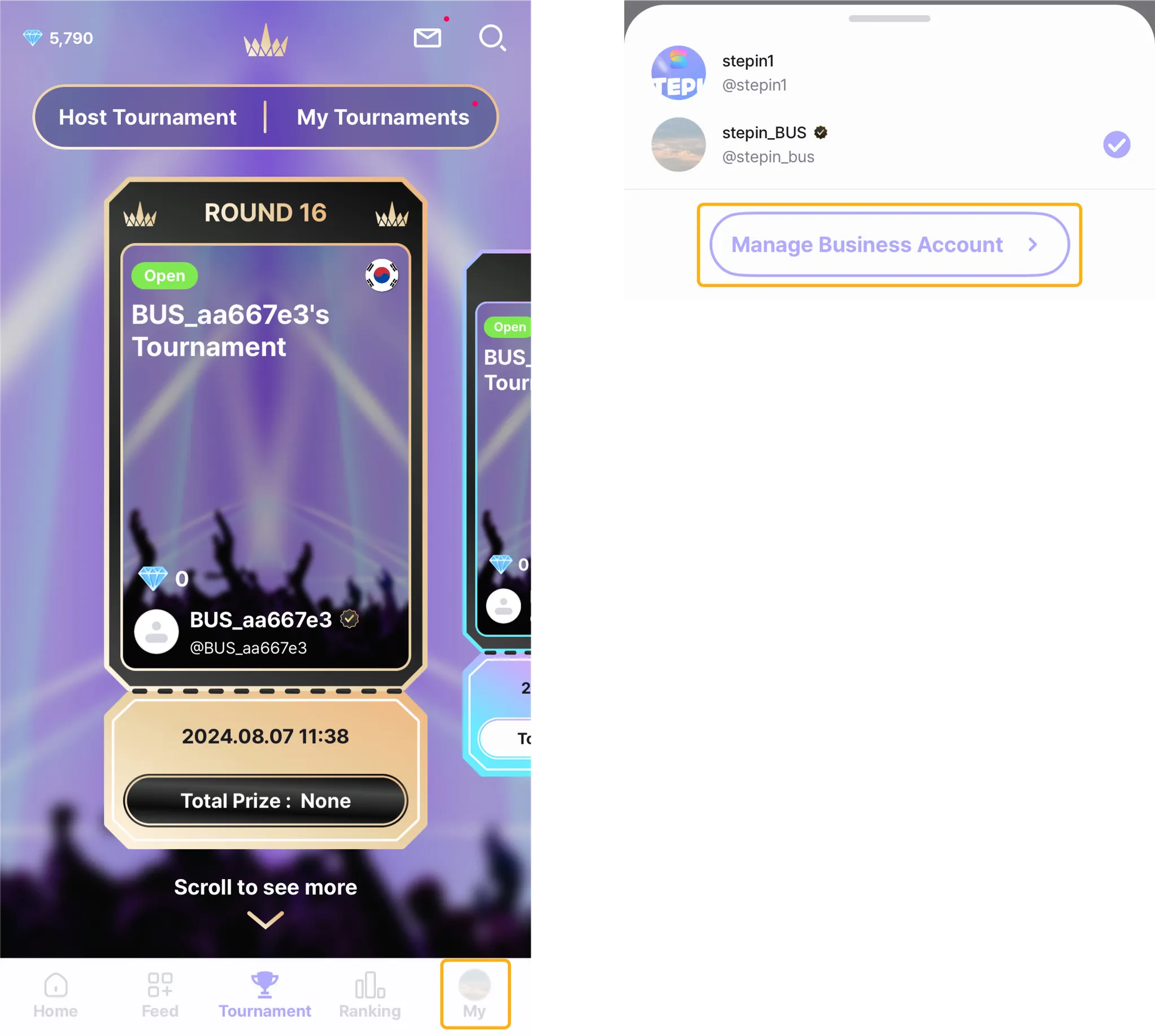 Tap and hold your profile picture for 3 seconds, then tap Manage Business Account.