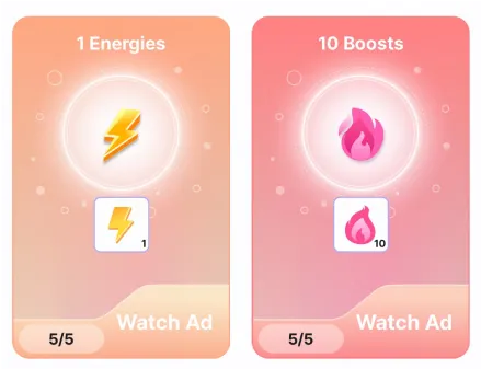 For each day, you can watch a maximum of 5 ads to earn energies and boosts.